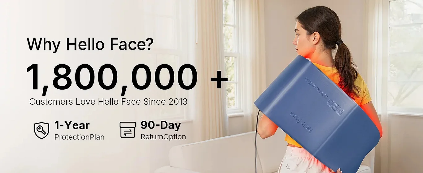 Helloface Red Light Therapy Belt utilizes utilizes a combination of 5 market-leading light wavelengths to treat a multitude of skin concerns deep within the skin, where even the best creams and serums can’t reach.
